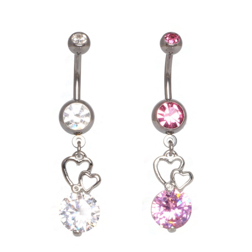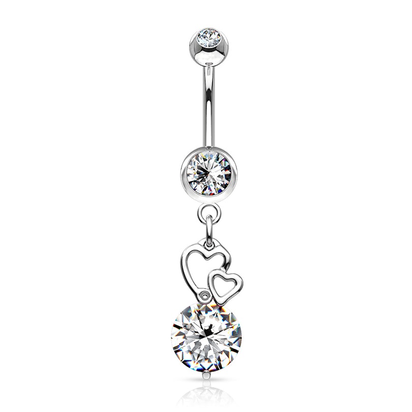 Bestel dit mooie navelpiercingssieraad met twee hartjes in een groot kristal vandaag nog en draag hem met wat geluk morgen al in je navel :).