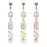 Blijf hip, trendy en onweerstaanbaar mooi met deze prachtige navelpiercing die overduidelijk de liefde symboliseert. Het sieraad is namelijk met een hanger versierd waarvan de letters het woord 'LOVE' vormen, wat het bekende Engelse woord voor liefde is. Hier krijg je dus liefde in zijn puurste vorm, hangend vanuit je navel.