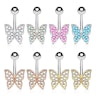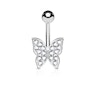 Navelpiercing met vlindertje dat perfect is om te pronken in de zomer! Deze navelpiercing is gemaakt van chirurgisch staal en heeft een voorzijde uit messing. De voorkant is gemaakt om eruit te zien als een zomer vol vlinders. Bij deze navelpiercing kun je de kleur van de vlinder zelf kiezen, waarbij je kunt kiezen tussen een blanke metaalkleur en goud. Je kunt ook de kleur van de kleine aangehechte stenen kiezen, waar je kunt kiezen tussen transparant en aurora borealis. Hoewel dit sieraad perfect is voor het zomerweer, moet je toch beter je piercing uithalen als je bijvoorbeeld gaat zwemmen of uitgaat. Dit sieraad is gelijmd en als het in contact komt met water kan de lijm op de kleine stenen worden opgelost en vallen de stenen eraf.