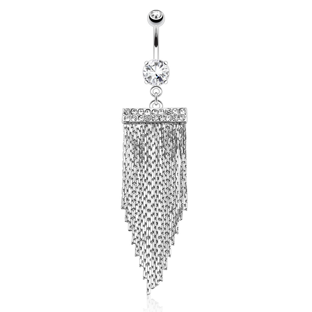 Ben je gek van een exclusieve en geraffineerde look? Kijk dan niet verder want je bent nu op de juiste plek beland! Deze fantastisch mooie navelpiercing is gemaakt van schitterend glanzend chirurgisch staal en druipt bijna van overdadige extravaganza. Het sieraad bestaat uit een 10 mm lange staaf met een top- en onderbal, die beide uitgerust zijn met een mooie, transparante steen. De totaal lengte van het sieraad is 8 cm, dus je krijgt echt een heel sieraad voor je geld.