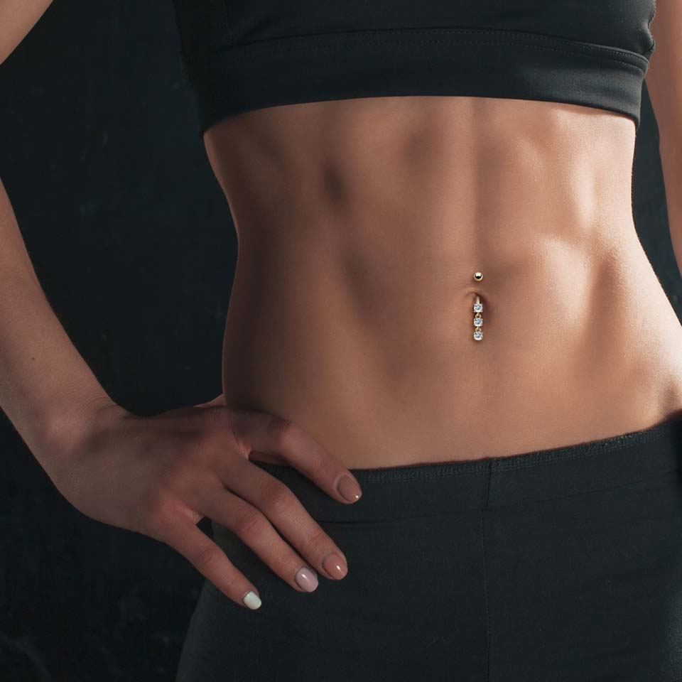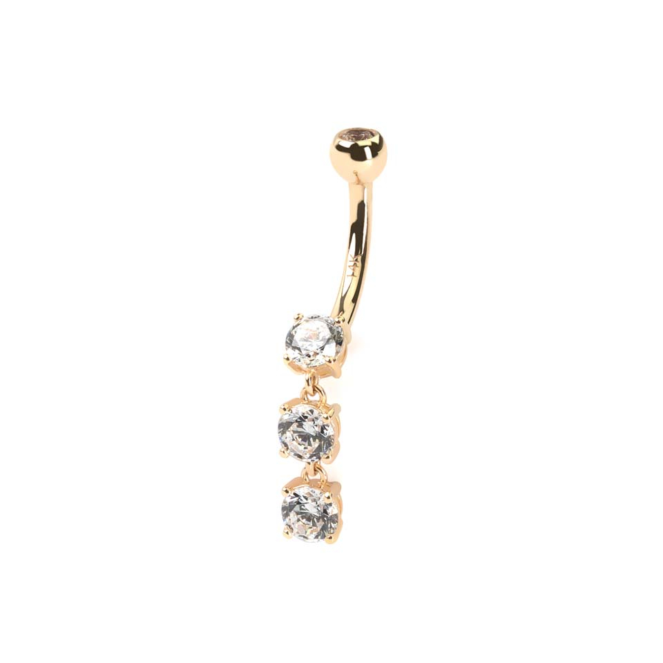 Naam: Navelpiercing uit 14 karaats goud met drie steentjes