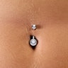 Het sieraad is als een bescheiden standaardsieraad gevormd, met een gebogen staaf en twee sluitballetjes. De beide balletjes zijn tevens ook nog met een hele mooie steen versierd, wat het totale plaatje van deze navelpiercing nog eleganter maakt.