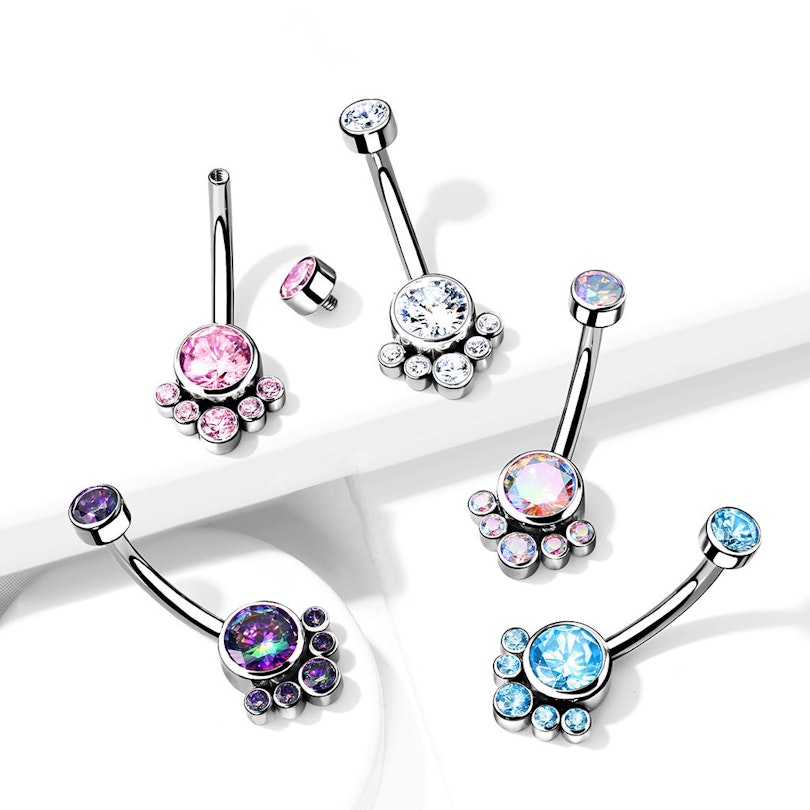 Naam: Navelpiercing uit titanium met ronde stenen