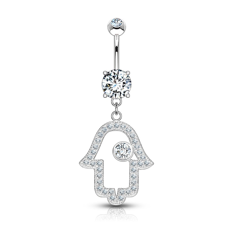 Naam: Navelpiercing van 14 karaats goud met hamsahand met steentjes