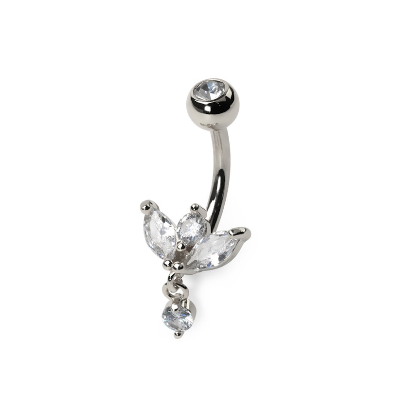 Klaar om te shinen met deze oogverblindende navelring van chirurgisch staal? Dit sieraad draagt een prachtig trio van markies-geslepen zirkonia steentjes, waaraan een subtiel steentje bungelt. De navelring is gemaakt van chirurgisch staal, wat bijdraagt aan de duurzaamheid en het comfort. Het staafje is 10 mm lang en heeft een draaddikte van 1.6 mm. Je kan kiezen tussen goud, zilver en rosƩ goud met transparante steentjes. Omarm glamour en projecteer zelfvertrouwen!