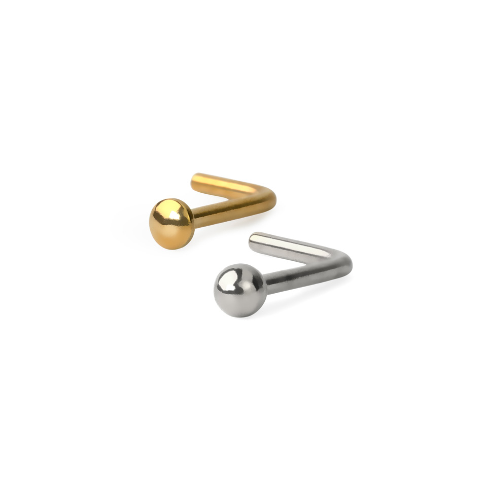 De neuspiercing is zo gemaakt dat er een kleine buiging in het midden van het staafje zit, zodat het echt net zo goed vast zal zitten in de neus als een neusschroefje. Beide varianten zitten super goed vast in je piercing, en bieden veel meer zekerheid dan een gewoon neusstaafje dat gewoon recht in de neus zit.