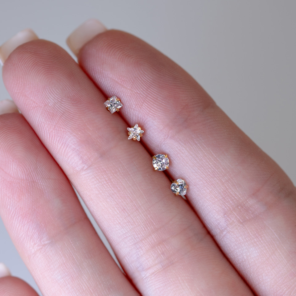 Neuspiercing met verschillende vormen en kleuren