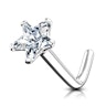 Het sieraad zelf is gevormd als een neusstaaf met een hoek van 90 graden in het midden. Dit is bijzonder praktisch, aangezien het sieraad hierdoor veilig en zeker vast zit in je neus, zonder dat je het risico loopt om jezelf te kunnen bezeren aan de binnenkant van je neus.