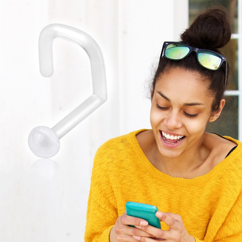 Deze neusschroef is gemaakt van PTFE en is helemaal doorzichtig. Dit sieraad is heel geschikt om op het werk te dragen of andere situaties waarbij je je piercing wilt verbergen.