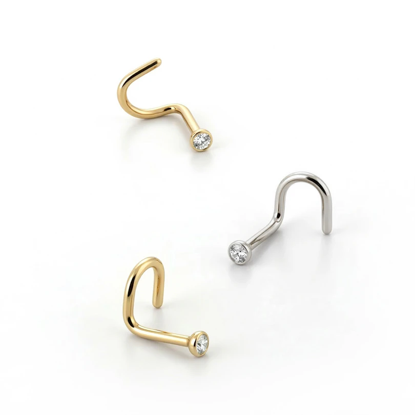 Neusschroefjes worden zo genoemd vanwege van de vorm van het staafje. Om dit sieraad in te doen, moet je de schroef in je neus draaien en omdraaien totdat hij er helemaal in zit. Deze neusschroef zorgt voor ultiem comfort zodat je geen pijn voelt als je hem aanraakt.