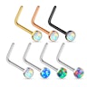 Mooie neuspiercing waarvan je zelf de kleur kunt kiezen. Wij hebben dit model in de kleuren: glanzend, goud, roodgoud en zwart op voorraad liggen. Ongeacht welke kleur je kiest, alle modellen hebben een mooie opaalsteen. Dat ziet er glamoureus, mooi en elegant uit. Alle kleuren hebben een witte opaalsteen, maar bij het glanzende model kun je ook nog uit de kleuren groen, blauw en lila kiezen. Je kunt dus geheel naar je eigen smaak een passende kleur kiezen.