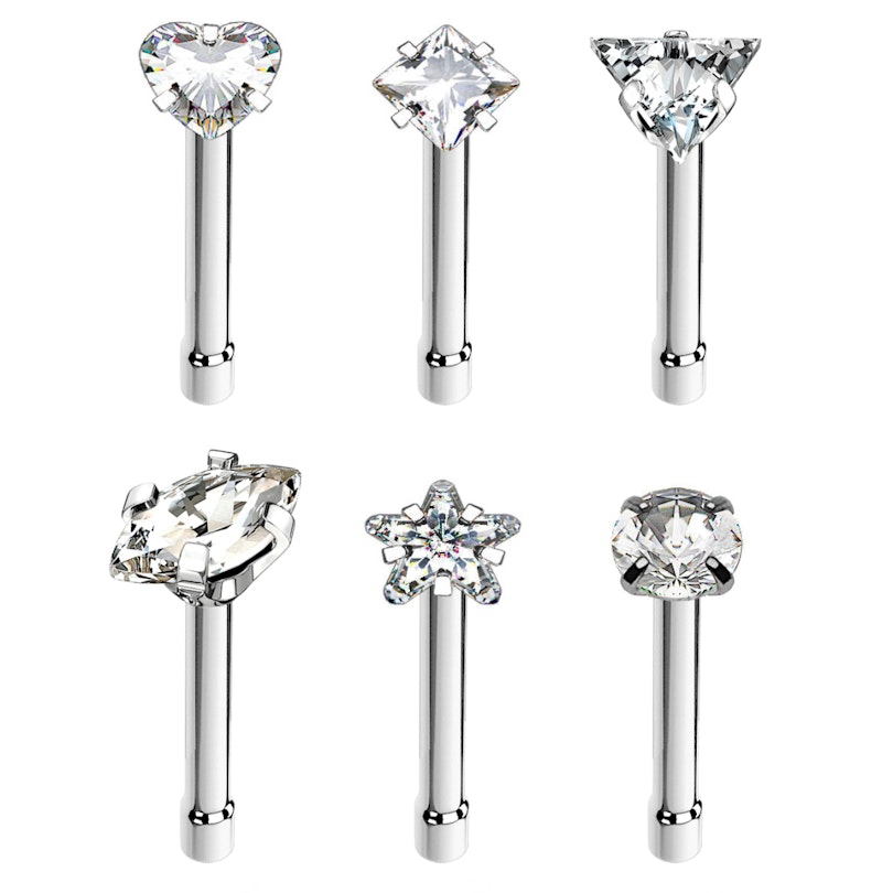 Met deze neusstaaf die je op de afbeelding hierboven kunt zien, heb je verschillende keuzemogelijkheden dan je op je handen kunt tellen - zelfs niet als je ook nog je tenen zou meerekenen. Je kunt namelijk het steenontwerp van het sieraad kiezen, waarbij je dus bijvoorbeeld tussen een vierkant of ovaal steentje kunt kiezen. Je kunt ook tussen verschillende kleuren voor de steentjes kiezen, zoals bijvoorbeeld een blauwe of een groene steen. Tot slot kun je ook nog eens de kleur van het staafje van het sieraad kiezen. Kies bijvoorbeeld tussen de elegante blank glanzende kleur, of ga juist voor de wat stoerdere zwarte uitgave. Je kunt het sieraad precies zo samenstellen zoals jij dat wilt met al deze keuzemogelijkheden.