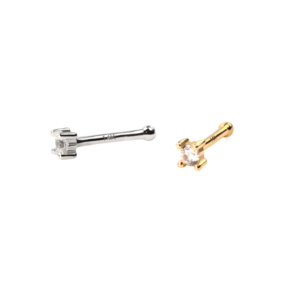 Simpele sieraden zijn vaak ook het mooist - met name wanneer het om een sieraad gemaakt van 14 karaats goud gaat. Het sieraad waar je nu naar kijkt is een heel gewone neusstaaf met een mooie facet geslepen steen op de voorkant van het sieraad. De neusstaaf is niet heel gewoon eigenlijk, aangezien het gemaakt is van 14 karaats goud - en je kunt het ook in de 14 karaats witgouden variant krijgen. Het sieraad meet 0,8 mm in draaddikte en 6 mm in lengte, wat dus betekent dat het heel discreet en klein is.