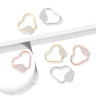 Er is een kleine engelenvleugel aan een zijde gemonteerd, die bedekt is met kleine heldere stenen. Als je het model voor het rechteroor selecteert, zal de vleugel ook aan de rechterkant zitten en vice versa als je links selecteert. Met andere woorden, je kunt niet hetzelfde model gebruiken voor zowel het linker als het rechteroor. Het kan wel, maar dan zit de vleugel omgedraaid en dat is niet de bedoeling. De afmetingen van de binnenkant van dit hart zijn 11 mm breed en 8 mm hoog. Zowel het hart als de vleugel zijn verguld met platina voor het zilverkleurige model en verguld met 14 karaats bladgoud voor de twee goudkleurige modellen.