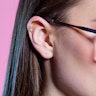 Oorpiercing in de vorm van een hennepblad