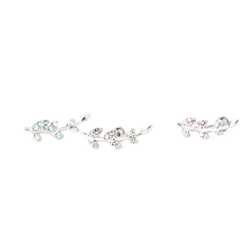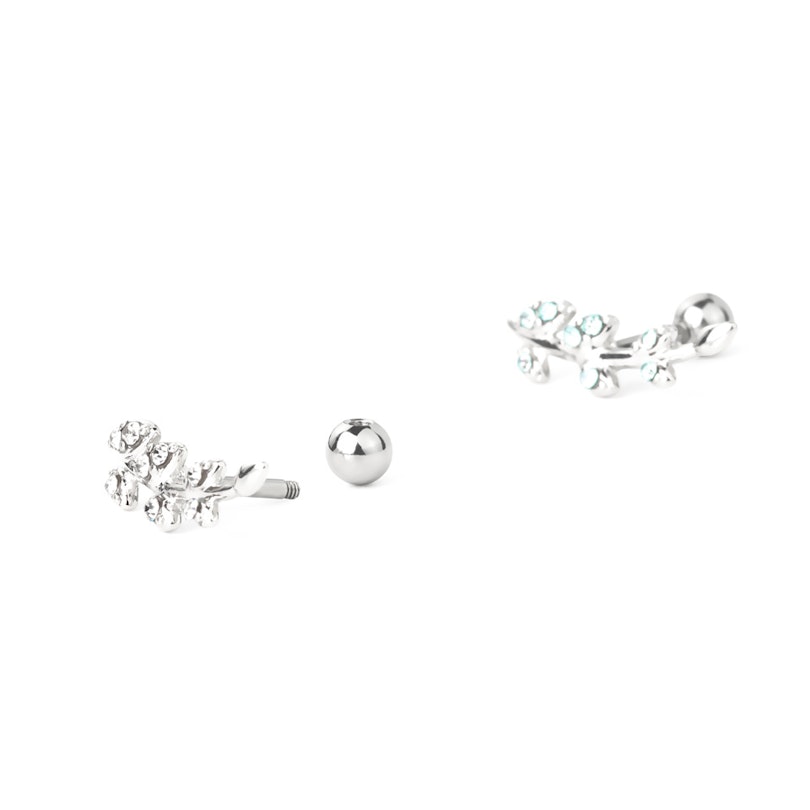 Oorpiercing met bladeren uit steentjes