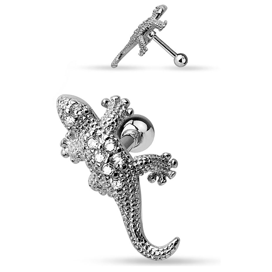 Naam: Oorpiercing met hagedis en steentjes