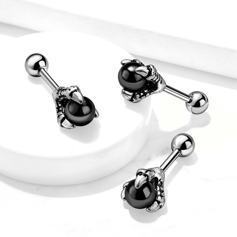 Naam: Oorpiercing met zwarte bal in drakenklauw