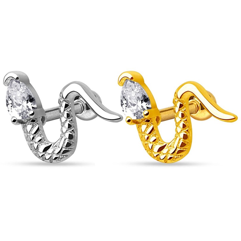 Draag deze kronkelende slang in je tragus-, helix-, of oorlelpiercing.