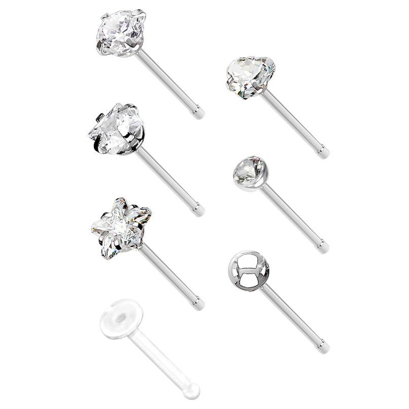 Ontbreekt het jou aan een neusstaafje voor alledaags gebruik? Met dit pakket met 7 neusstaafjes heb je de mogelijkheid om iedere dag van de week een ander sieraad te dragen. Ieder neusstaafje heeft een ander design. Heb je geen eenvoudige en elegante neusstaaf, die je kunt dragen aan tafel met je familie? Dan heb je nu een neusstaafje met een rond, glanzend balletje die perfect is voor deze gelegenheid. Er is ook een neusretainer die je kunt dragen als je een vergadering hebt met je baas op maandag ochtend, in het geval dat het niet is toegestaan om een piercing te dragen op het werk. Er zijn veel verschillende mogelijkheden om uit te kiezen, zoals bijvoorbeeld de neusstaaf met een half balletje, waarop een transparant steentje geplaatst is - dit neusstaafje past perfect bij iedere gelegenheid.
