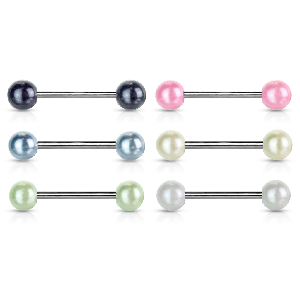 Naam: Pakket met zes tongpiercings met parelballetjes