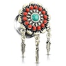 Deze plug is gebouwd met een decoratieve voorkant die een bloem moet zijn. De bloem heeft in het midden een prachtige turquoise acrylkraal die goed past bij de rode kralen rond de rand. Naast de rand met kralen zit nog een kleine rand - Deze rand bestaat echter uit kleine bladeren die het ontwerp van de bloem echt doen opvallen. Niet alleen is er een bloem en veel kleine details, deze plug heeft ook drie kleine veertjes aan de onderkant van de voorkant toegevoegd. De veren hangen vrij zodat ze bewegen als je lichaam beweegt.