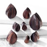 Het juweel bestaat uit een donker stuk hout. Hout is een natuurlijk materiaal waardoor je oor beter kan ademen en er dus minder kans op onaangename geurtjes is. Hout is echter een kwetsbaar materiaal, maar zolang je er goed voor zorgt, gaat het lang mee.