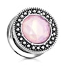 De plug waarop je geklikt hebt, heeft een antieke coating op de voorkant gekregen. Hierdoor verkreeg het zijn donkere kleur, zoals je op de afbeelding hierboven kunt zien. De donkere kleur contrasteert mooi met de roze kleur en zodat het wat leuker is om naar te kijken, is de steen omringd met blanke bolletjes.