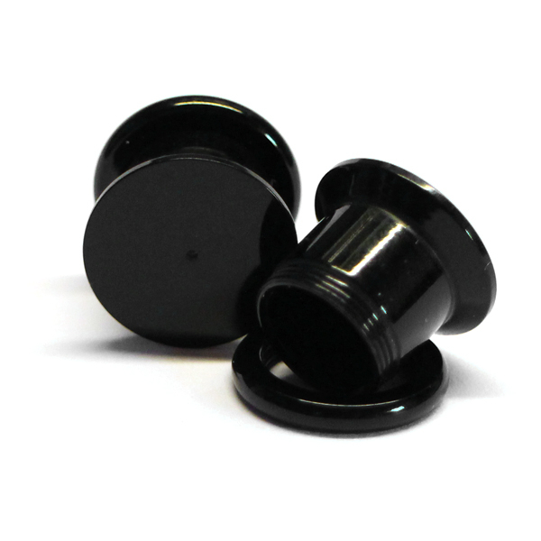 De plug is gemaakt van zwart acryl en heeft een schroefdraad aan de achterkant, zodat hij makkelijk in en uit het oor te nemen is. Aan de voorkant is het helemaal vlak met een klein gaatje van 0,8 mm in het midden, wat heel geschikt is voor normale oorringen of oorbellen die je normaal gesproken alleen kunt dragen als je gewoon kleine gaatjes hebt in je oren.