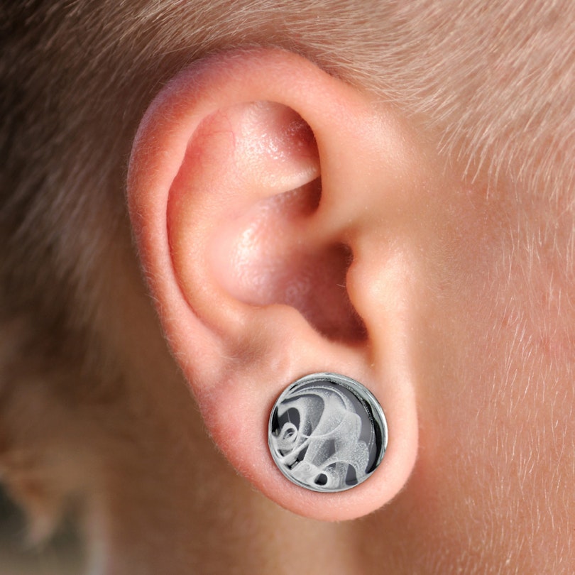 Het sieraad bestaat hoofdzakelijk uit doorzcithig glas, waarbij de achtergrond zwart is gemaakt zodat de mooie, lichte rookwervel goed zichtbaar is. Verwacht echter niet dat je een plug zal ontvangen met echte rook, aangezien het hier gaat om een kunstmatig rookpatroon. Maar het patroon is ook van plug tot plug verschillend, want de rookwervel is bij iedere plug anders uitgepakt.Het effect wordt natuurlijk nog beter zichtbaar na mate het sieraad ook groter wordt.