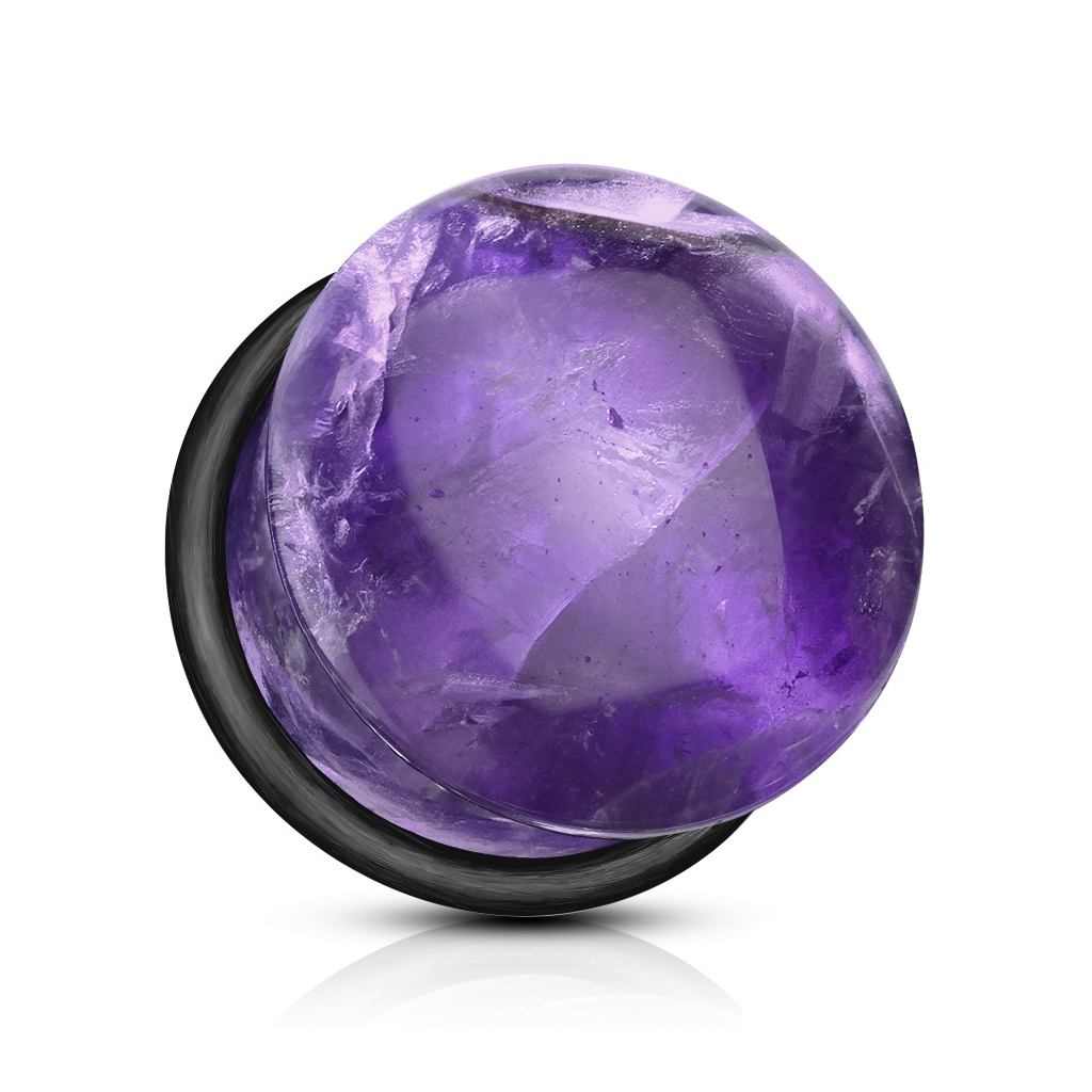 De plug die je op de bovenstaande afbeelding ziet, is gemaakt van organisch materiaal - meer specifiek kwarts. De naam van de steen is amethist en is ongelooflijk mooi in zijn variërende uiterlijk. De basiskleur is lila, maar de kleurvarianten gaan van zeer licht violet naar donker. In het juiste licht is het zelfs mogelijk dat er duidelijk transparante gebieden zijn. Zoals je ook op de productafbeelding kunt zien gaan er aderen door het sieraad. Het is niet iets dat je kunt voelen omdat de steen volledig glad gepolijst is - maar door stoten of krassen kan de steen kwetsbaar zijn bij de aderen, dus het is belangrijk om ze niet op de vloer te laten vallen.