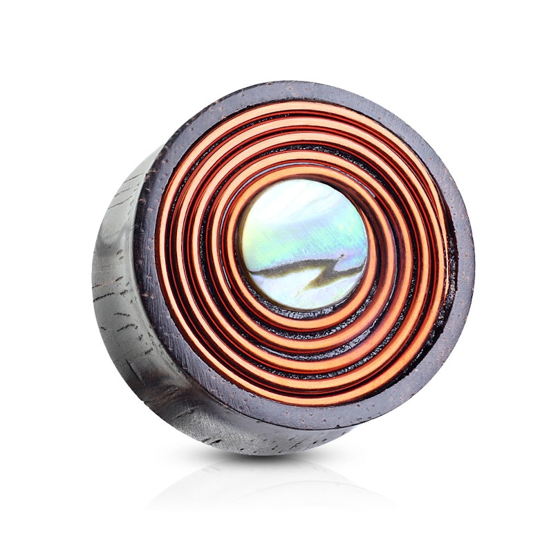 De plug waar je nu naar kijkt, is ook gemaakt van een organisch materiaal, namelijk hout. Het sieraad is verkrijgbaar in groottes vanaf 10 mm tot en met 25 mm, dus er is helaas geen sieraad voor hen die net met stretchen begonnen zijn - maar, je kunt er in ieder geval wel naar uit kijken tijdens het stretchen. Op de voorzijde van het sieraad zit een klein plaatje van parelmoer in het midden met daar omheen koperdraad. Dat klinkt misschien een beetje gek als je het sieraad nog niet gezien hebt, maar geloof ons maar, het ziet er echt gaaf uit!