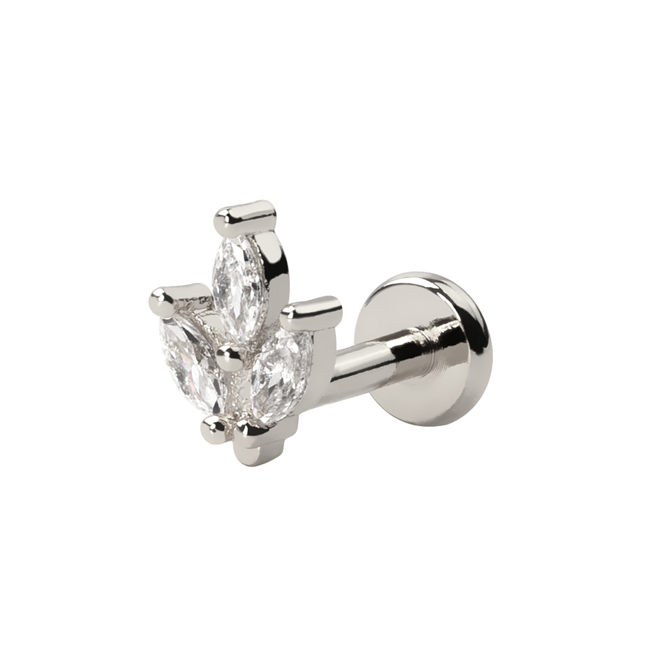 Dit juweeltje is een push-in labret. Het sieraad heeft geen schroefdraad: in plaats daarvan duw je het kleine gebogen pinnetje in het staafje. Je kan de bovenkant gewoon uit het staafje trekken en er weer in duwen - super makkelijk en ongecompliceerd.