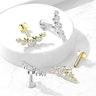 De labret is gemaakt van 14 karaats goud en is verkrijgbaar in twee uitvoeringen: geelgoud en witgoud. U kunt kiezen tussen een 6 mm of een 8 mm staafje, afhankelijk van uw wensen. De 5 zirkonia steentjes in verschillende groottes zijn een echte blikvanger, en dankzij de gebogen plaatsing van de steentjes past de vorm van de labret perfect in uw helix of uw oorlel.