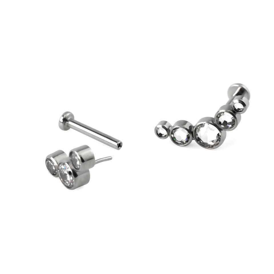 Dit is een push-in labret, wat betekent dat het sieraad draadloos is. In plaats van een schroefdraad heeft dit sieraad een klein, licht gebogen pinnetje waarmee je de top in het onderste staafje duwt. Dit ontwerp maakt dat het sieraad heel makkelijk te gebruiken is.