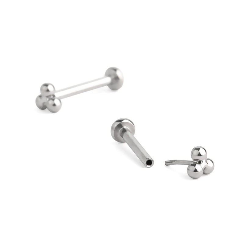 Naam: Push-in labret van titanium met driehoekig balletjes design
