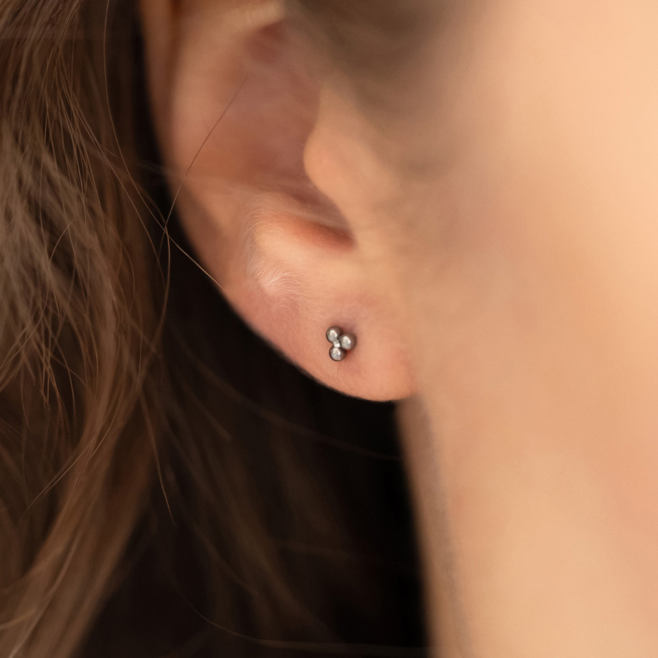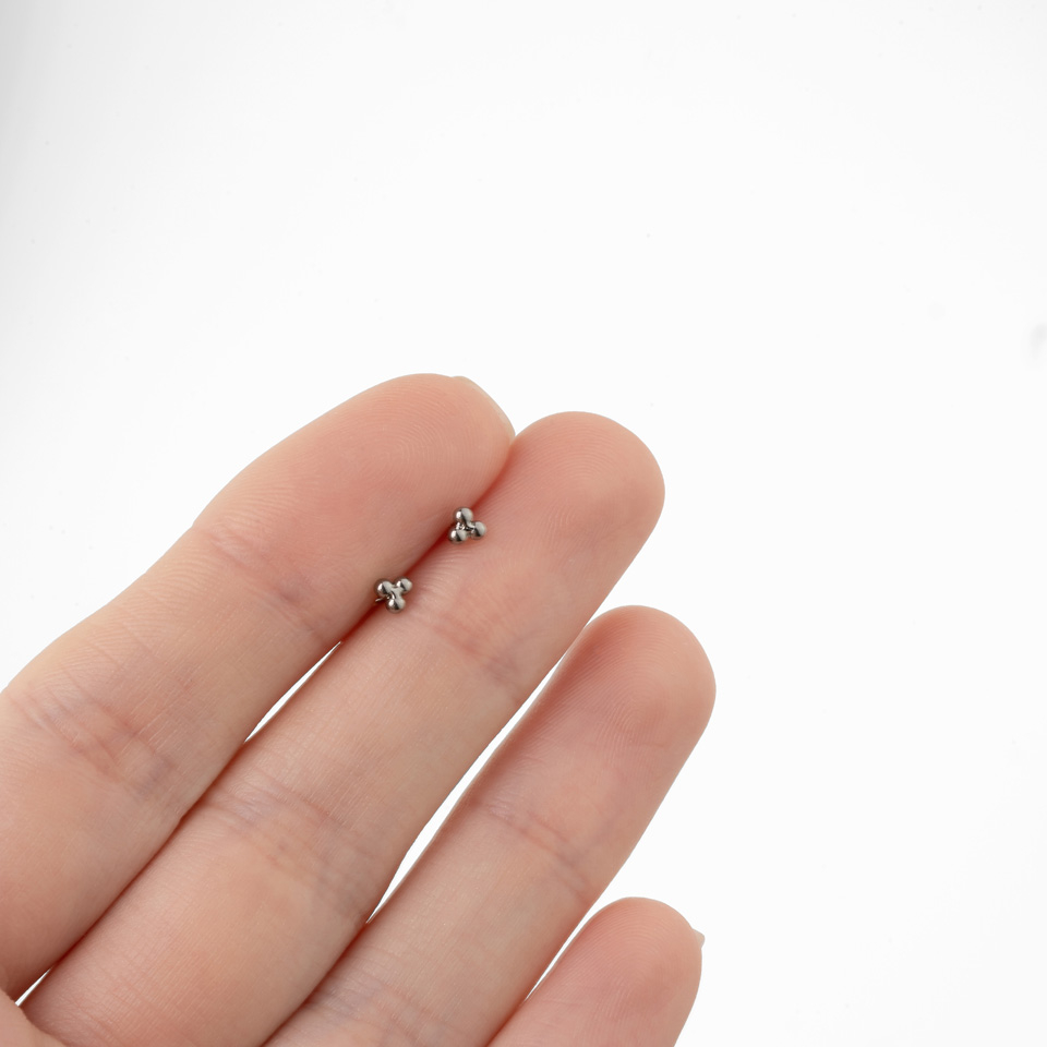 Push-in labret van titanium met driehoekig balletjes design