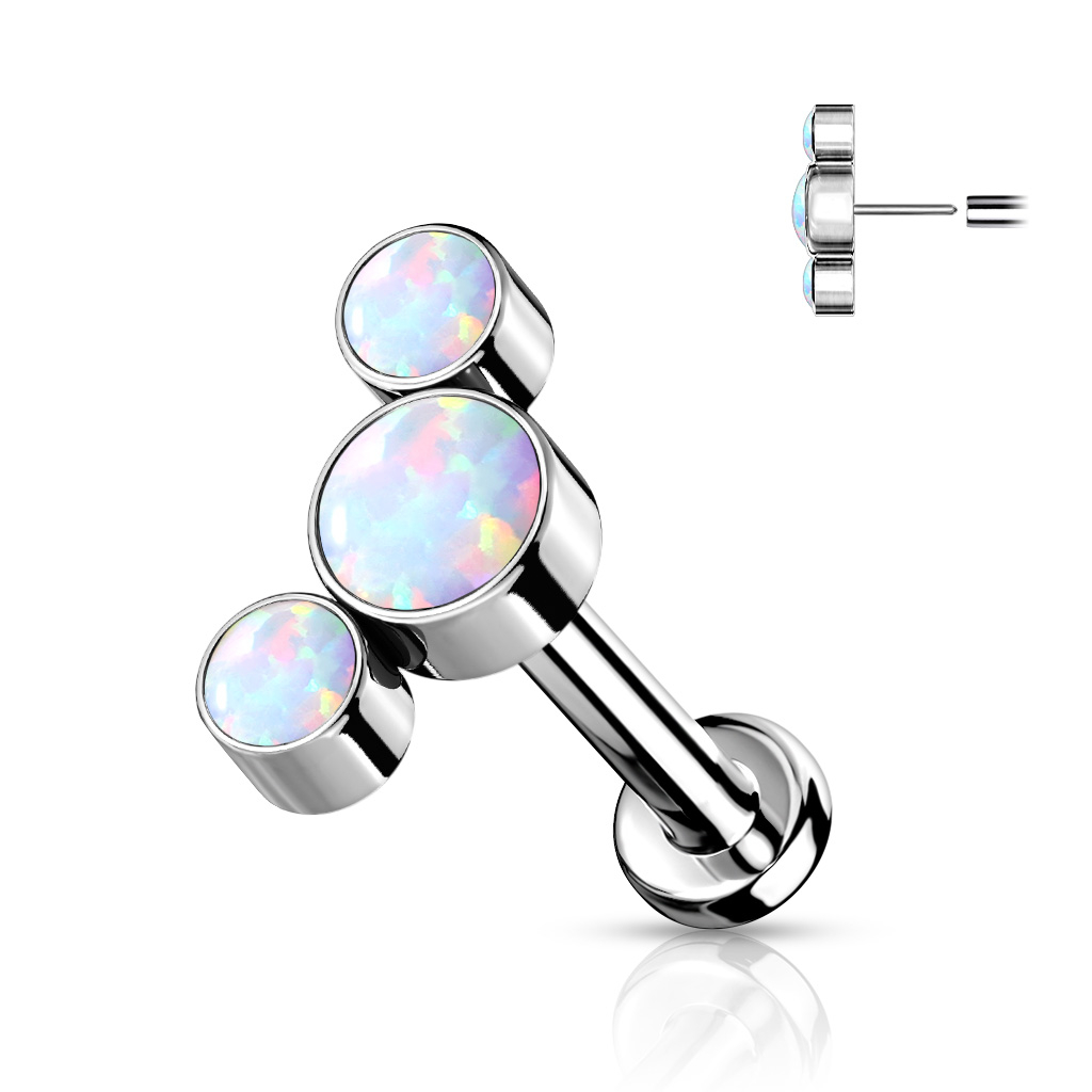 Push-in titanium labret met opaalstenen