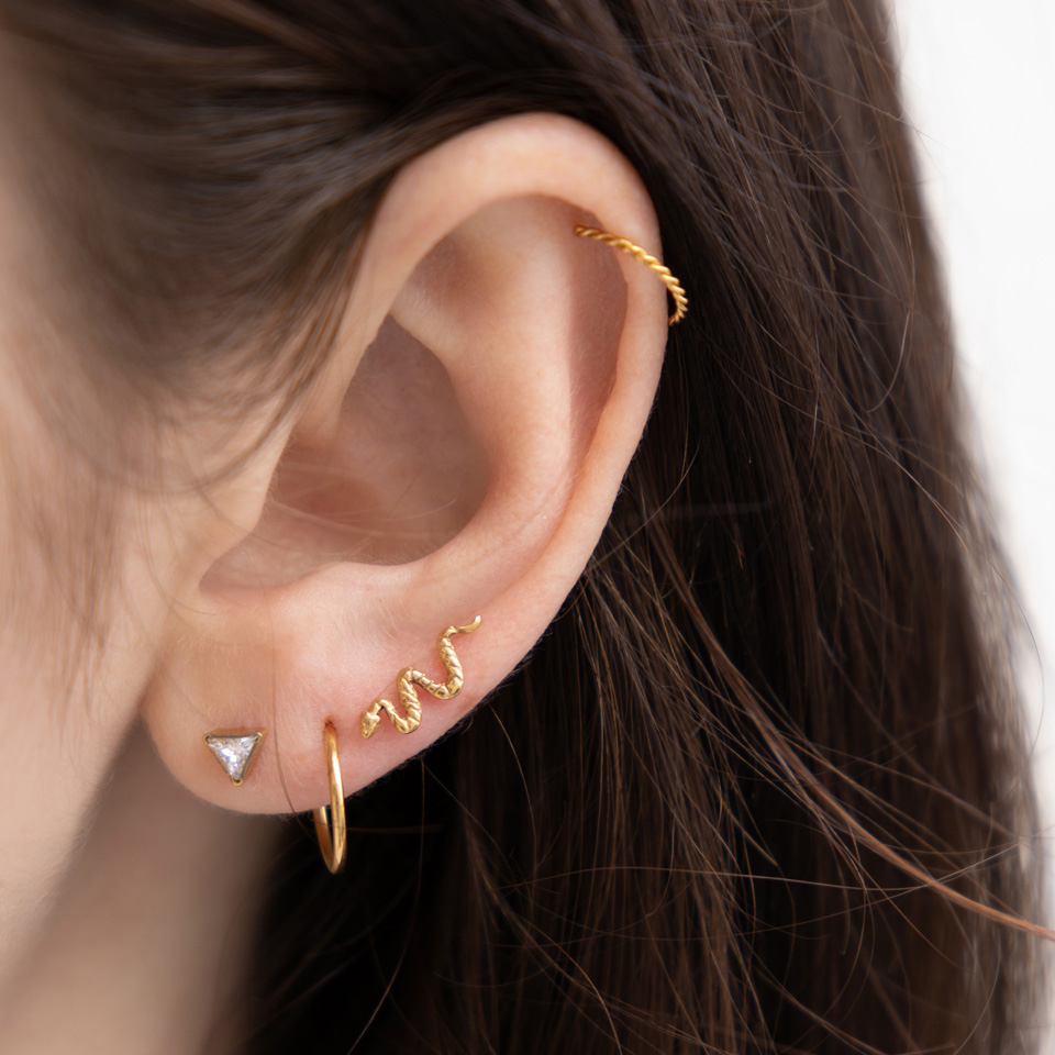 Het sieraad is erg leuk en gedetailleerd, het feit dat het dun is maakt het subtiel en bruikbaar, zelfs als je meerdere oorbellen in één oor hebt zonder dat het te veel wordt. Het enige probleem dat ik wil melden is dat de steel van de oorbel erg kort is, terwijl de pin achter te lang is, wat het sluiten moeilijk maakt.