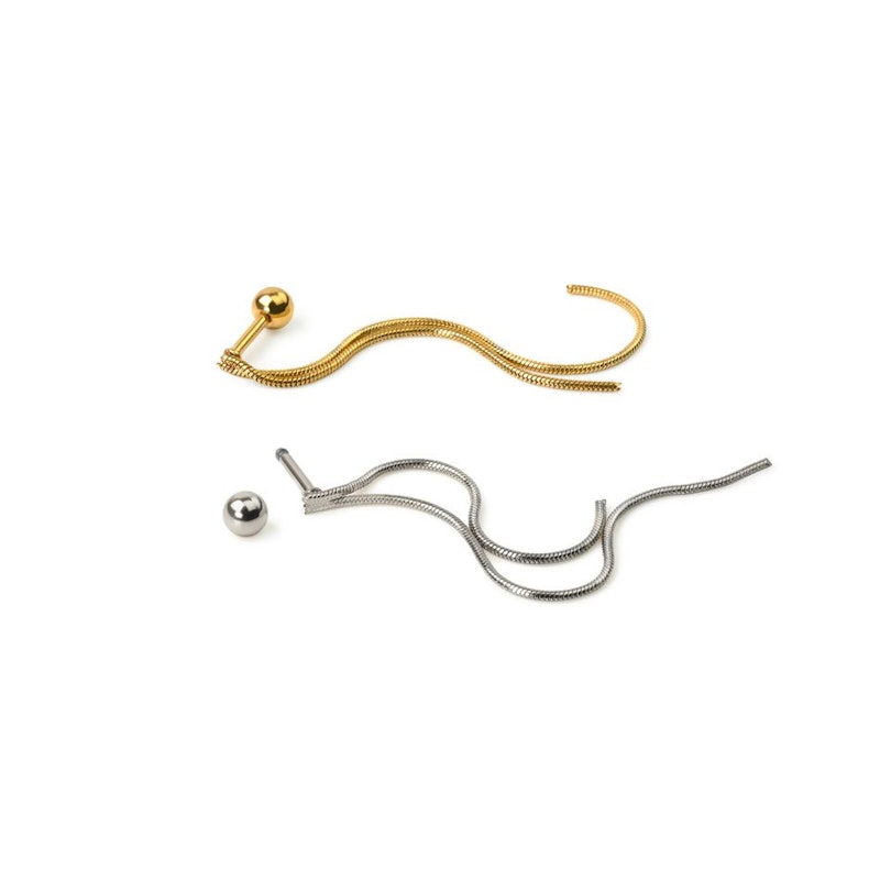 Het sieraad is bedoeld voor gebruik in het oor, wat je ook kunt zien op een van de foto's. Je kunt het overal gebruiken waar de afmetingen van het sieraad overeenkomen met de afmetingen van je piercing. Het staafje is 6 mm lang en 1.2 mm dik. Gebruik het bijvoorbeeld in een helix, waarbij de kettingen mooi langs het oor hangen.