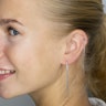 Als je hangende oorbellen zoekt, heb je zeker het juiste sieraad. Het staafje dat je hier op de foto ziet, heeft aan de voorkant twee lange kettingen. Ze zitten vast aan het staafje waar ook een 4 mm vergrendelingsballetje aan vast zit. De kettingen zijn niet zo lang, waardoor ze een levendig spel geven en bungelen wanneer je beweegt. De langste meet ongeveer 6 cm.