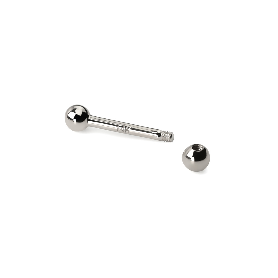 Hier kun je een werkelijk veelzijdig sieraad uit echt 14 karaats goud bestellen. Het sieraad bestaat eigenlijk uit een rechte staaf met een balletje aan ieder einde - welke in verschillende diktes en lengtes verkrijgbaar zijn, afhankelijk van waarvoor je het wilt gebruiken. Het kleinste model dat wij hebben heeft een staafdikte van 1,2 mm en is in drie legtes verkrijgbaar, terwijl het 1,6 mm staafdikte model in vier verschillende lengtes verkrijgbaar is.