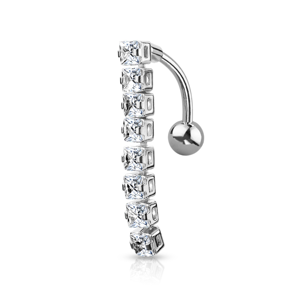 Omgekeerde navelpiercing met kleine loshangende stenen