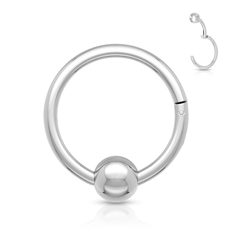 Bij de meeste ringen met een bal, werkt de bal als een sluitingsmechanisme. Bij deze ring is dat niet het geval. Op deze ring maakt de bal deel uit van de ring zelf. De bal is bevestigd aan een kleine staaf, die vervolgens met een scharnier aan de rest van de ring is bevestigd. Hiermee kan je het sieraad eenvoudig openen door het kleine staafje te grijpen om het scharnier te openen. Het uiteinde van de ring klikt in een kleine uitsparing zoals de bal.