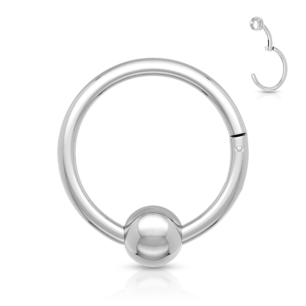 Bij de meeste ringen met een bal, werkt de bal als een sluitingsmechanisme. Bij deze ring is dat niet het geval. Op deze ring maakt de bal deel uit van de ring zelf. De bal is bevestigd aan een kleine staaf, die vervolgens met een scharnier aan de rest van de ring is bevestigd. Hiermee kan je het sieraad eenvoudig openen door het kleine staafje te grijpen om het scharnier te openen. Het uiteinde van de ring klikt in een kleine uitsparing zoals de bal.