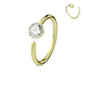 Simpele sieraden zijn vaak nog het mooist, en daar is deze simpele, kleine ring met mooie transparante steen een heel goed voorbeeld van. De ring is vooral heel erg geschikt voor de neus, waar het simpele design met de kleine facet geslepen steen goed tot zijn recht komt. Het kan natuurlijk ook heel goed als oorpiercing gebruikt worden, bijvoorbeeld in de helix of tragus.