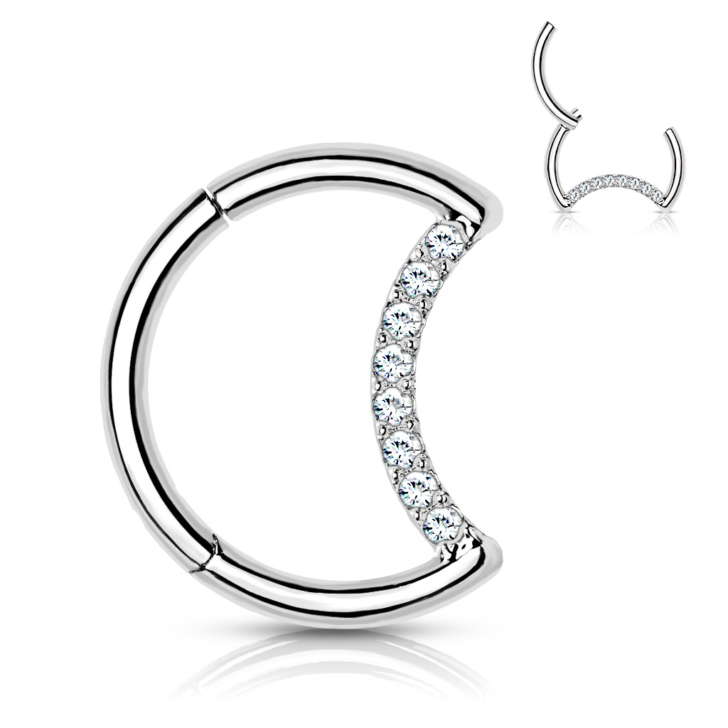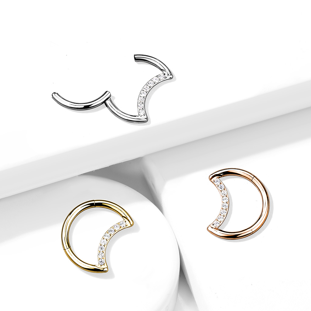 Deze ring heeft hoogwaardige kenmerken. Ten eerste is titanium een duur materiaal. De ring bevat een scharnier, wat meestal een kenmerk is van prijzige sieraden. Daarnaast zie je dat de steentjes op de halve maan met veel precisie zijn ingelegd, een hoogwaardig detail.