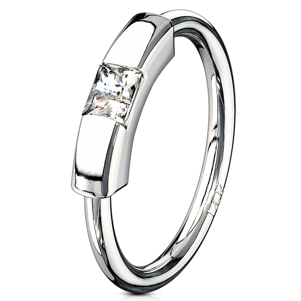 Prachtig mooie en elegante segment ring van echt 14 karaats goud, voor zij die alleen genoegen kunnen nemen met het beste van het beste wat betreft piercing sieraden. De ring straalt kwaliteit en tijdloze elegantie uit met het prachtige en eenvoudige ontwerp en de mooie, vierkante steen.