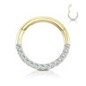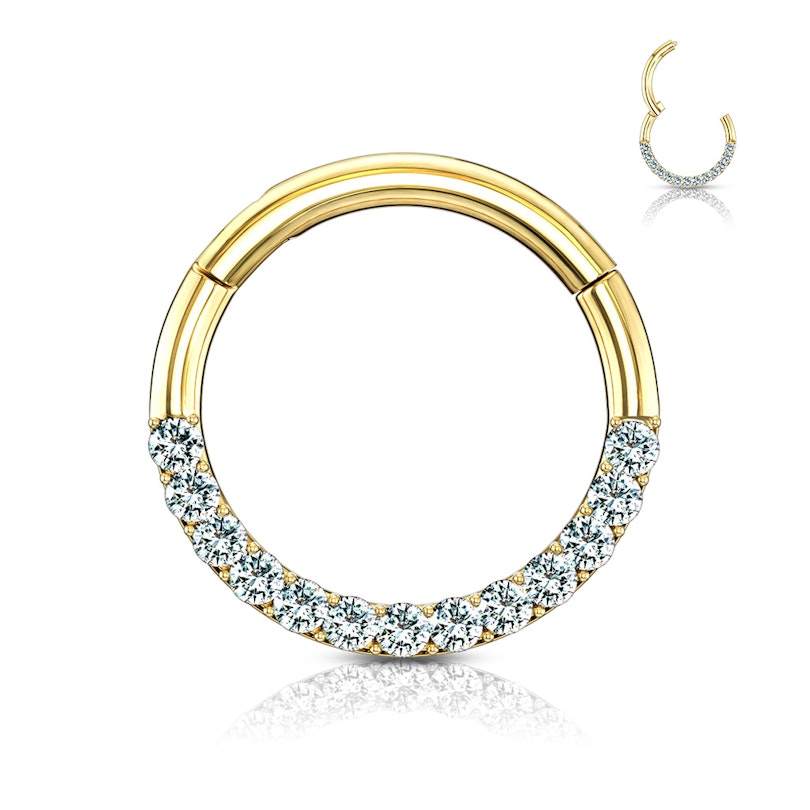 Zoals je kunt zien op de afbeelding, zitten er een hele hoop steentjes op dit sieraad. De gehele onderste helft van de ring is bezet met vele kleine transparante steentjes, zodat je een werkelijk schitterend gouden sieraad voor je geld krijgt.