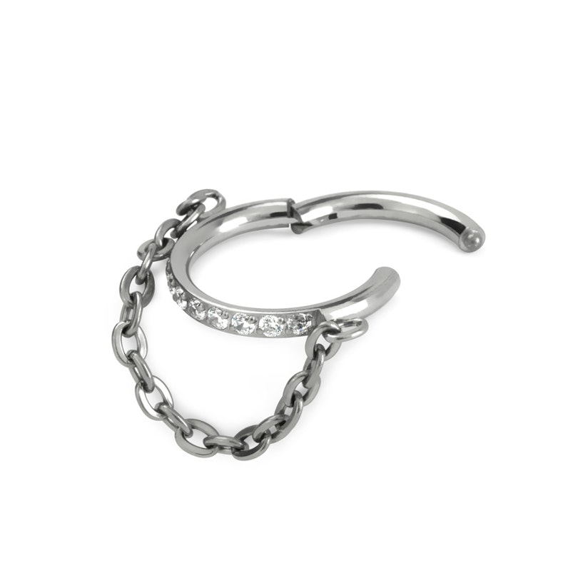 Scharnierende ring met steentjes en kettinkje
